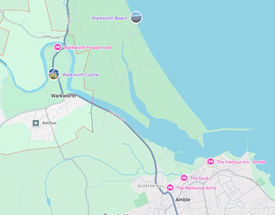Progressing beyond Amble, the one mile road to Warkworth runs by the scenic River Coquet with a number of parking bays to stop and take in the view. With a good footpath, it's also a pleasant walk. You can often see heron, occasional otters and plenty of other wildlife - if you’re lucky, you may see a flash of kingfisher colour.