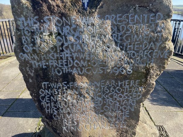 It was near here on the 1st January 1660 that General Monck crossed the River Tweed to start his march to London, culminating in the restoration of King Charles II"