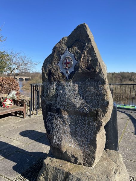 "This stone was presented to the Burgh of Coldstream by the Coldstream Regiment of foot guards on the day on which they were proud to receive the freedom of the Burgh, 10th August 1968.