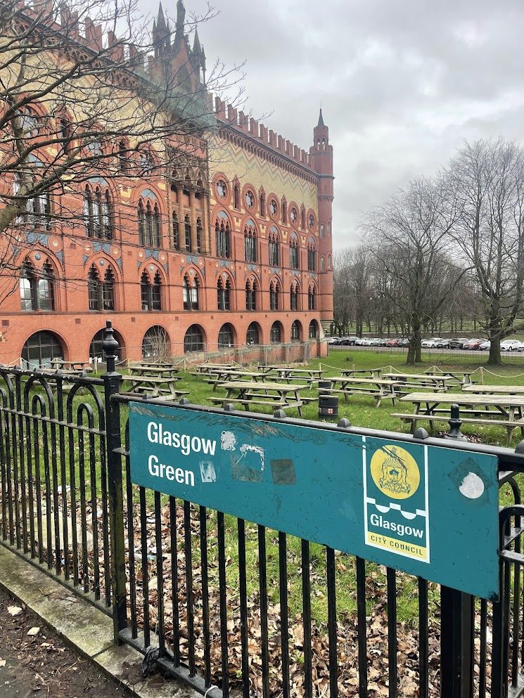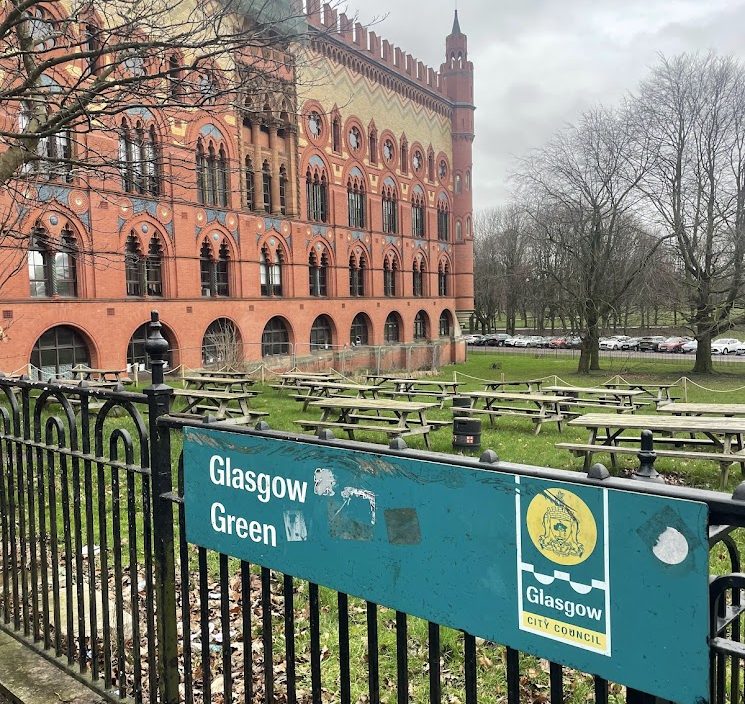 Glasgow Green, the oldest park in the city, is a decent sized space for a stroll by the river Clyde.