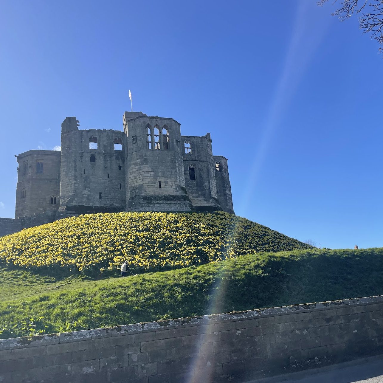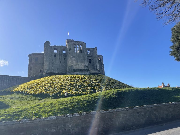 Journeying North through Amble and on to Warkworth, taking in the castle’s magnificent daffodil display, and reflecting on the two years and 30,000 miles of motorcycling since I last photographed it.