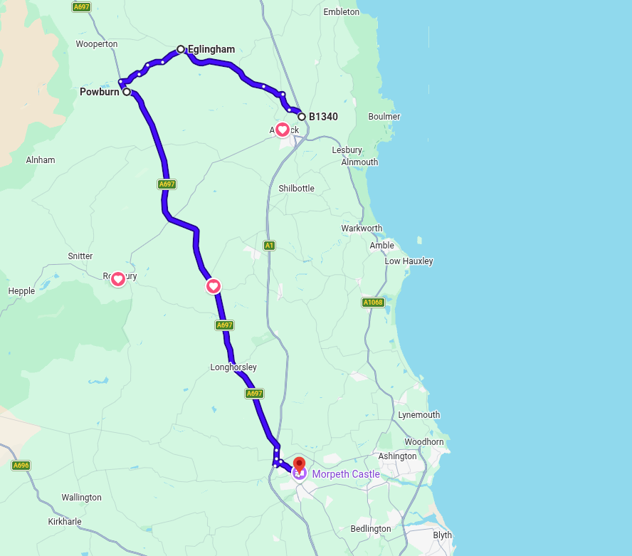 A pleasant run up the Northumberland Coastline - a well travelled road - with stops at Woodhorn and Newbiggin.